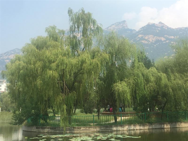 泰山廣場(chǎng)西側(cè)有一公園名曰御碑公園, 公園依山而建,園內(nèi)淺丘起伏,林木蔥郁,環(huán)境幽靜,根據(jù)高差,分為上下兩處水景,一棵棵柳樹倒映在水中,構(gòu)成了一幅美妙的畫卷。